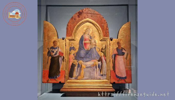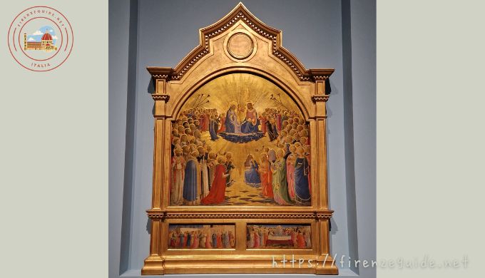 こちらは、普段はメインの板絵と裾絵が別々の場所に保管されている作品です。メインの板絵はフィレンツェのサン・マルコ美術館、裾絵はベルリン、ヴァチカン、アルテンブルクで所蔵されています。
